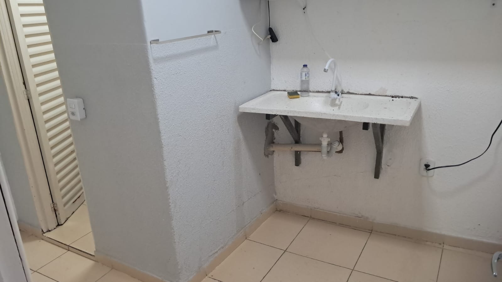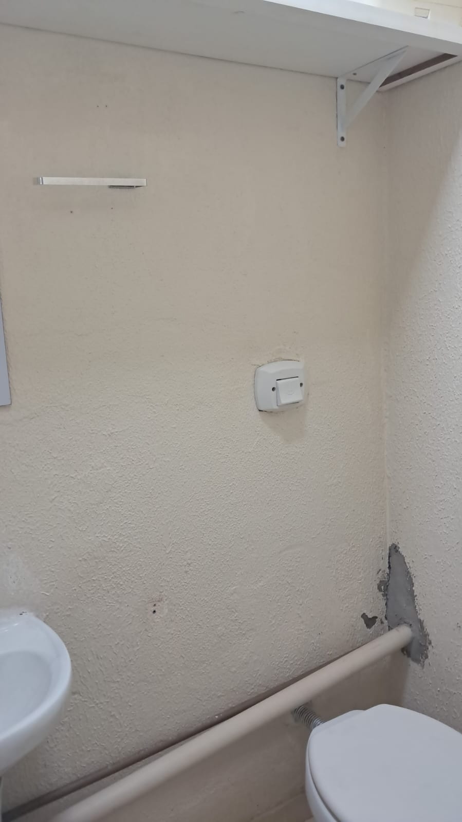 Uma sala e banheiro.